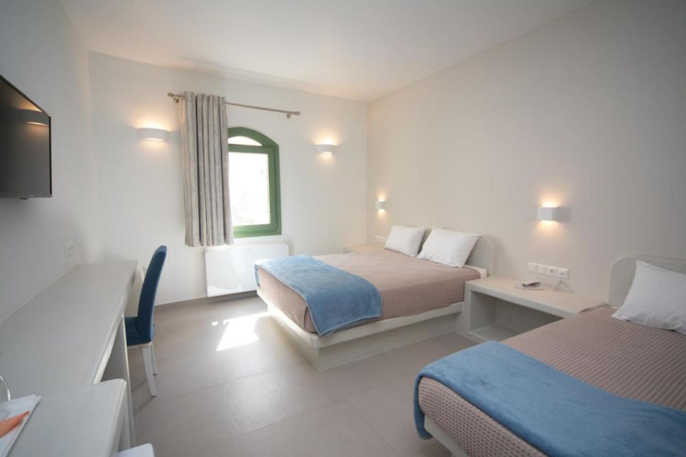 Малък хотел, построен в класически стил, в центъра на град Фира, на централния площад. Хотелът работи целогодишно и предлага комфортно настаняване, топла и уютна атмосфера,на 6 км от летището и на 11 км от пристанището.