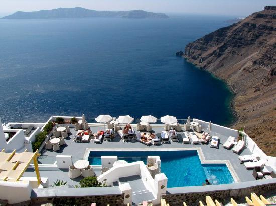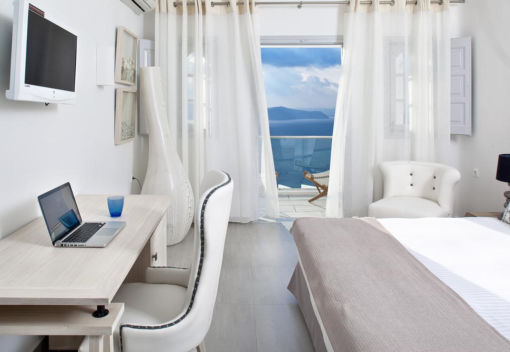 В хотела: 24 часова рецепция, басейн с шезлонги и чадъри и гледка към Калдерата, бар, Wi-Fi, СПА център.