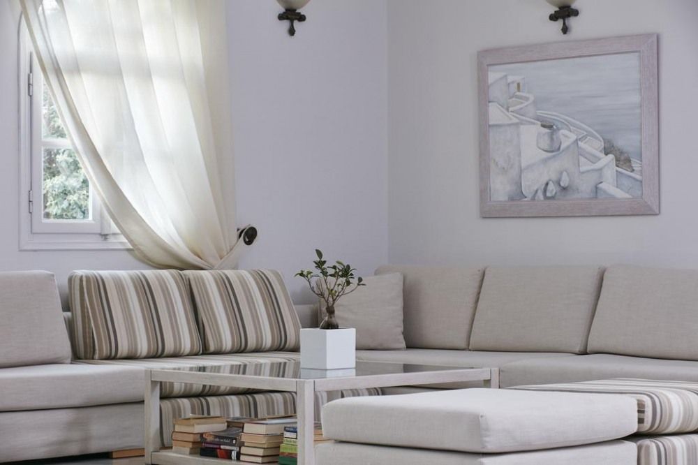 Хотелът се намира на 9 км от столицата Фира, в селището Камари, на 50 м. от брега на морето. Построен през 2001 - 2002 г. в традиционна цикладска архитектура и изцяло реновиран през 2014 г.