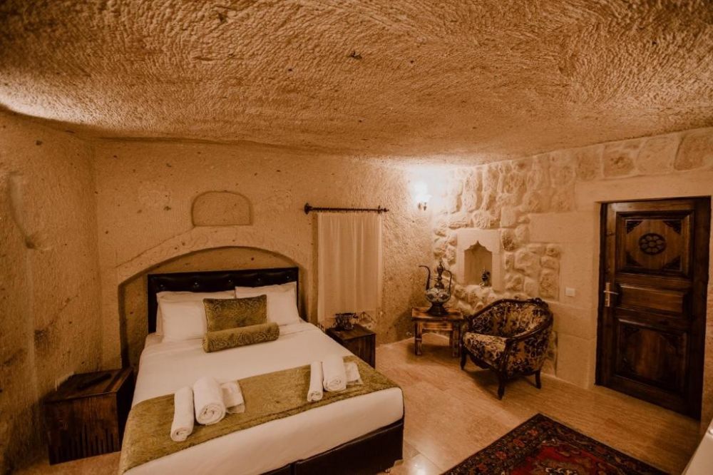 ORTAHISAR CAVE HOTEL предлага турска баня и автентични пещерни стаи с модерни удобства като безплатен Wi-Fi и телевизор с плосък екран със сателитни канали. Всяка каменна стая в хотела е с индивидуален декор в отомански стил. Стаите разполагат с кът за сядане, минибар и безплатни удобства за приготвяне на чай и кафе. Самостоятелните бани включват хидромасажна вана, душ и сешоар, чехли и безплатни тоалетни принадлежности.
