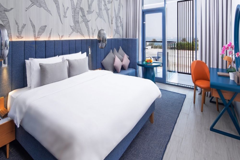 - Делукс стаи с изглед към морето (Deluxe Room Sea View): Също с площ от 53 кв.м., тези стаи предлагат панорамен изглед към Арабско море.
