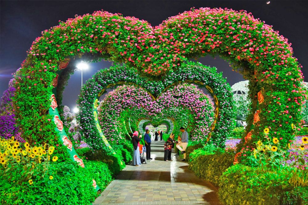 Ще се насладите на най-големите вертикални и хоризонтални градини в света с около 45 млн. Цветя разположени на 72 кв. Км площ. Някои от растенията, посадени в Дубайската градина, никога преди не са били отглеждани в района на Персийския залив, най-популярни сред които са петуниите и невенът. Интересното е, че цветята са засадени така, че да образуват различни форми. Някои изобразяват сърца, звезди, различни видове кръгове, а има и по-мащабни фигури като пирамиди, ретро коли, мостове, водни обекти, дъговидни пътеки, цветни чадъри и множество други /престой в градините около 1:30 часа/.