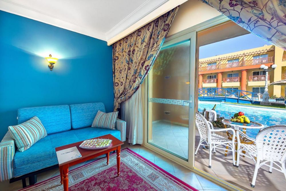 Хотелът разполага с общо 593 стаи, разположени триетажна корпуси, от които пететажни сгради, от които Standard rooms (с изглед градина, басейн, частичен изглед море, 48 m²), Swim up standard rooms – adults only (48 m²), Superior rooms pool view, garden view, (55 m², 1 спалня, баня с джакузи), Family Standard rooms (55 m² 1 спалня с изглед градина, басейн, частичен изглед море), Family rooms (58 m², две спални със свързваща врата, с изглед градина/басейн), Bungalow rooms (48 m² adults only, разположени в средата на басейна, заобиколени от вода). Всички стаи са оборудвани с климатик, телевизор, телефон, баня с душ, сешоар, тоалетни принадлежности, сет за чай/кафе, минибар, сейф, балкон/тераса. Почистване на стаите, смяна на кърпите и спалното бельо - всеки ден.
