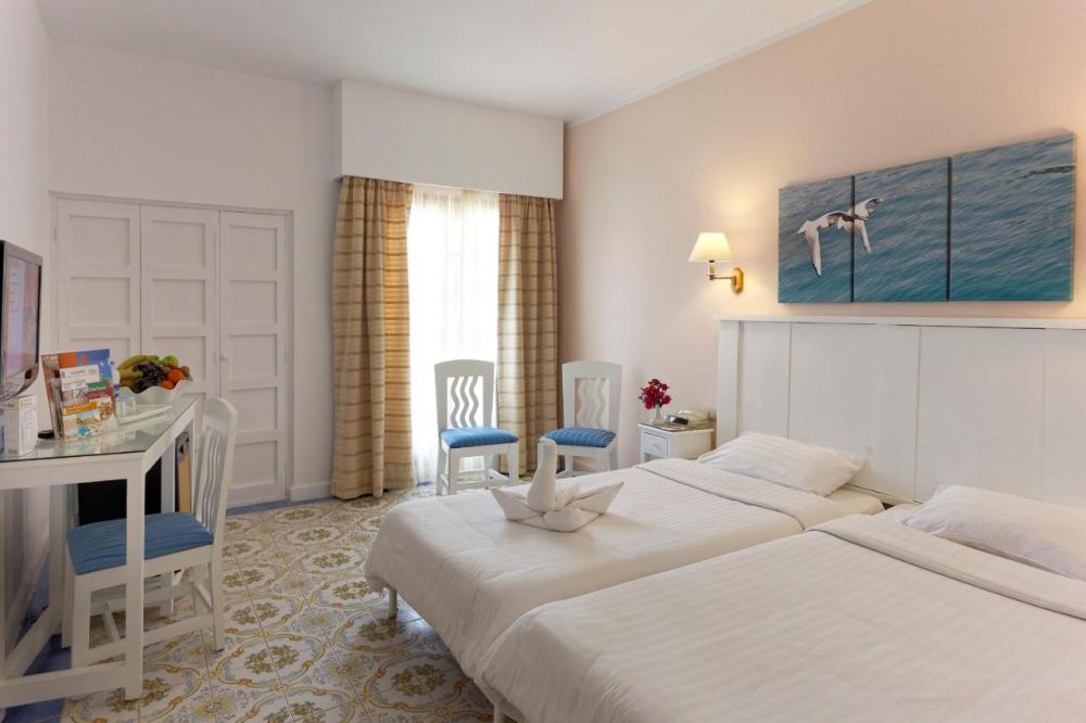 Всички стаи са оборудвани с климатик, телевизор, телефон, баня с душ, сешоар, сет за чай/кафе, минибар (платен), сейф (безплатен), Wi-Fi (безплатен). Почистване на стаите и смяна на кърпите – всеки ден, смяна на спалното бельо – 2 пъти в седмицата.