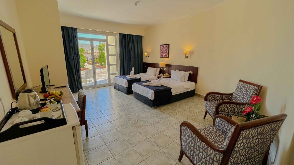 Намира се на 18 км от летище Шарм ел Шейх, на 8 км от централната част на курорта Наама Бей и на 4 км от Стария град, на 500-600 м от брега на морето (2-ра линия).