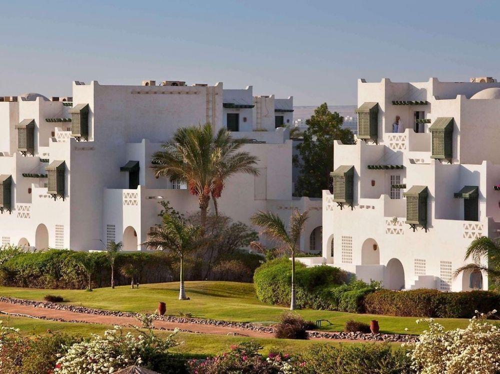 Разположение:  Хотелът разполага с с обширна територия и силна анимация. Препоръчваме го за активна и семейна почивка с деца, както и за любителите на гмуркането и сърфа. Хотел Mercure Hurghada 4* е част от групата хотели Mercure Hotels, управлявана от Accor Hotels и се намира в Хургада, само на 10 минути с кола от летището, на 5 км от летище Хургада, на 7 км от центъра на града, на самия бряг на морето на един от най-добрите плажове в района.  Състои се от основна едноетажна сграда (само рецепция), комплекс от 3-етажни сгради и три 2-етажни вилипостроени в ориенталски стил.