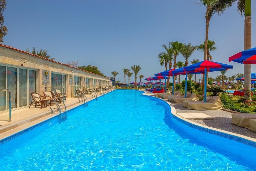 Местоположение: Хотелът се намира на брега на Червено море, на първата брегова линия в района Ел Мамша в Хургада, само на 12 км от центъра на града и на 5 км от летище Хургада.