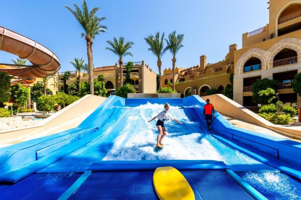 Разположение: Grand Waterworld Makadi (по-рано известен като Sunwing Waterworld Makadi) се намира на 25 км от летището в Хургада и на 35 км от центъра на града и на първа линия от брега на морето. Построен около огромен воден парк, с огромни водни пързалки, басейн с вълни, Flowrider и ленива река, това е идеалното място за бебета и деца от всички възрасти, които обичат водата.
