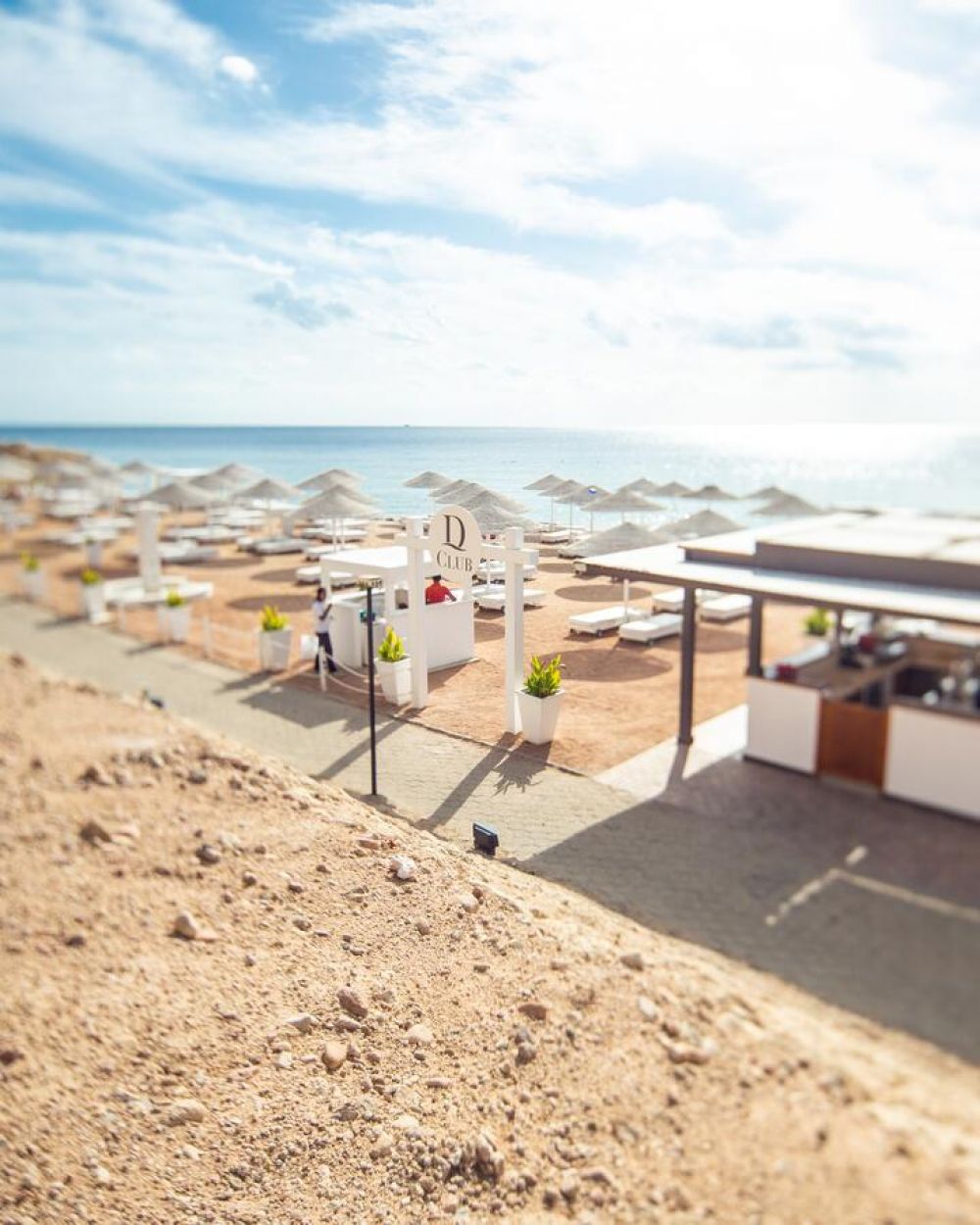 Собствен, пясъчен, 2 кея. Чадъри, шезлонги, матраци и плажни кърпи на плажа и при басейна - безплатно.