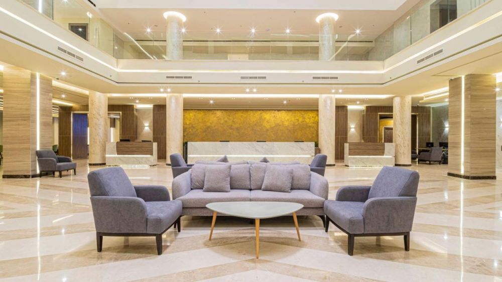 Oсновен ресторант, 3 а-ла-карт ресторанта, 5 бара (1 платен), дискотека (напитки срещу заплащане) , 5 открити басейна (2 са отопляват през зимата), аквапарк с 7 водни пързалки за възрастни, 2 тенис корта (с твърдо покритие), СПА център, конферентна зала, магазини, Wi-Fi в общите части на хотела.