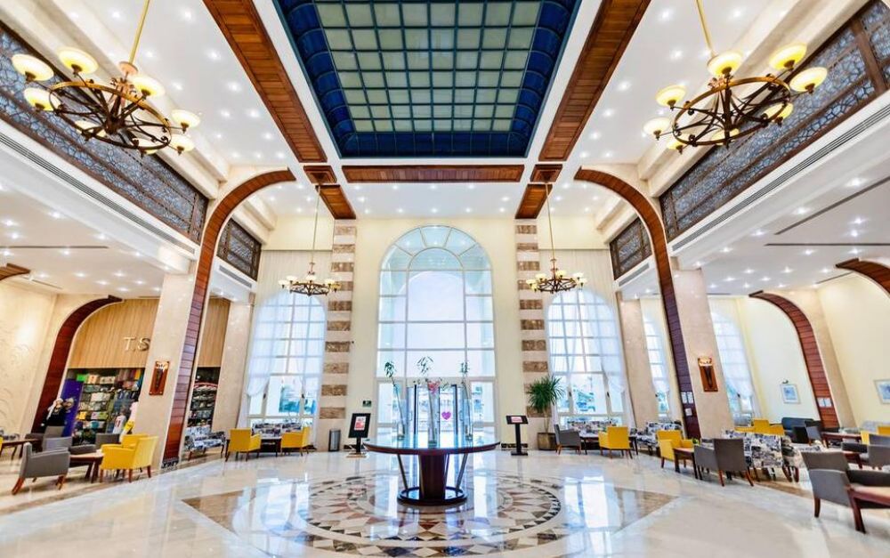 Основен ресторант, а-ала-карт ресторант, 3 бара, открит басейна с 5 пързалки, конферентна зала, СПА център, паркинг, магазини, Wi - Fi (в лоби). За децата: детски басейн, мини клуб (4-12г.), детска площадка. Безплатни услуги: Тенис на маса, фитнес, водна гимнастика, аеробика, боча, дартс, плажен волейбол, анимация. Платени услуги: сауна, парна баня, турска баня, масаж, пилинг, джакузи, салон за красота, тенис на корт, билярд, моторни водни спортове, дайвинг, уиндсърфинг.