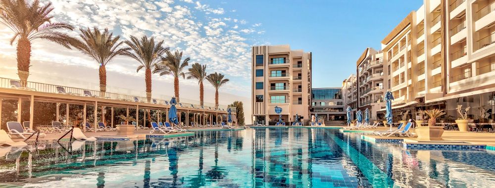 Намира се на 20 км. от летище Хургада, на 15 км. от центъра на Хургада, на брега на морето.