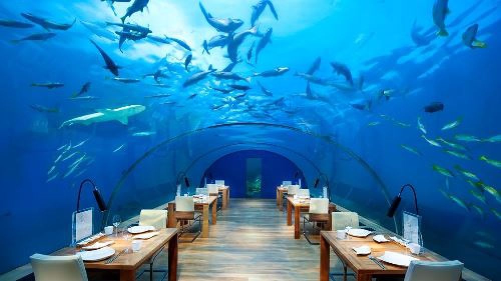 - ITHAA Undersea Restaurant се намира на пет метра под повърхността на Индийския океан. Гостите ще се насладят не само на превъзходно меню, но и на зашеметяваща 180-градусова панорамна гледка към оживени коралови градини и морски живот. Ithaa е на разположение за частни вечери, сватби и специални поводи.