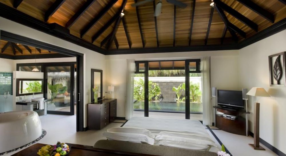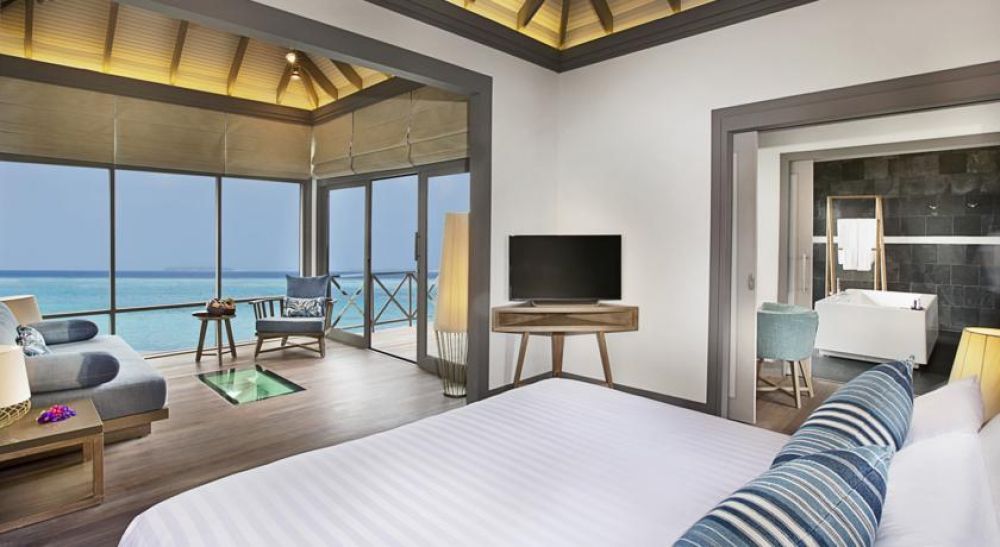 Всички 84 просторни и климатизирани вили са с плоскоекранен телевизор, кафемашина Nespresso и избор на възглавници. Вилите над водата имат панорамен изглед към Индийския океан. В самостоятелната баня има релаксиращ душ тип тропически дъжд, личен сейф, 24-часов румсървиз, а някои са със СПА вана. На разположение на гостите са 22 плажни бунгала с малък басейн; 24 водни вили sunrise, с малък басейн и стъклени подове; луксозни апартаменти с дизайнерски стаи, обширни тераси за слънчеви бани и зашеметяващи гледки. Тристайните апартаменти Royal Island предлагат 2 спални, 13-метров частен басейн, душ на открито, трапезария, сауна и лична стая за масаж.