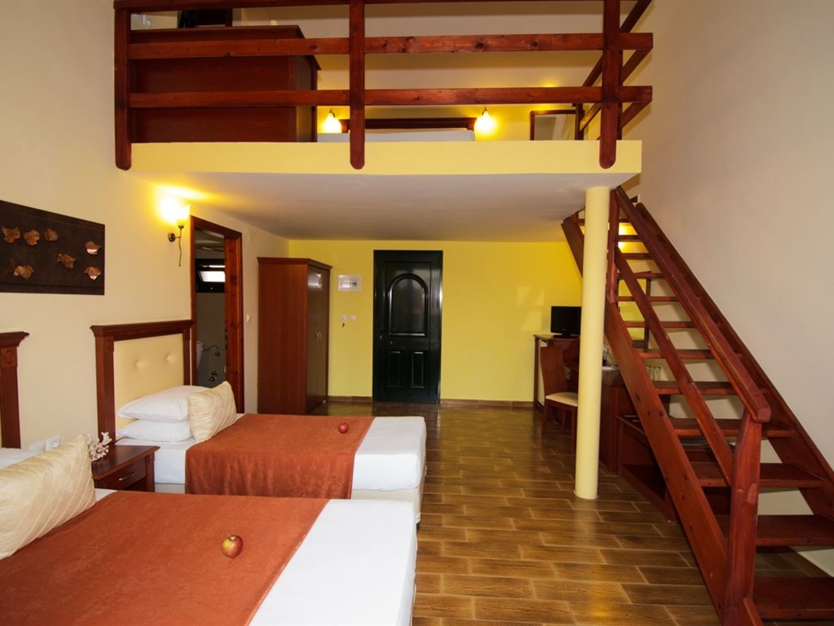 Местоположение: на 100 метра от пясъчен плаж и на 2 км от курорта Метаморфоси. Хотелът се състои от 11 сгради.