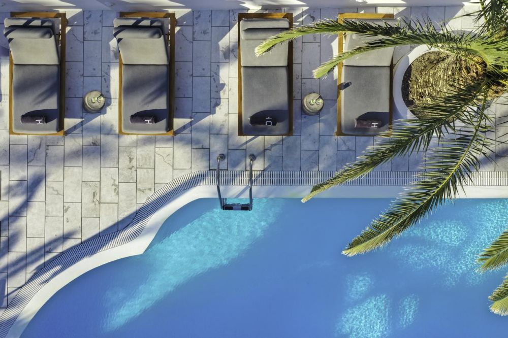 На терасата за закуска се сервира закуска с гръцко кисело мляко, традиционни специалитети и домашни сладкиши. В бара край басейна, заобиколен от палми, се сервират коктейли, кафе и леки закуски.