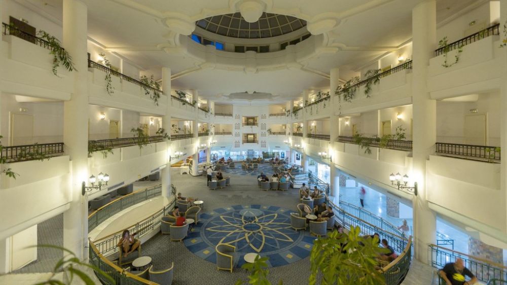 На територията на хотела: Основен ресторант Tulipe, лоби бар Iris, бар басейн, 2 открити басейна, 3 водни пързалки, 1 закрит басейн (отопляем през зимата), 2 тенис корта, обменно бюро, СПА център, 4 конферентни зали, анимация, 24 часова рецепция, СПА център.