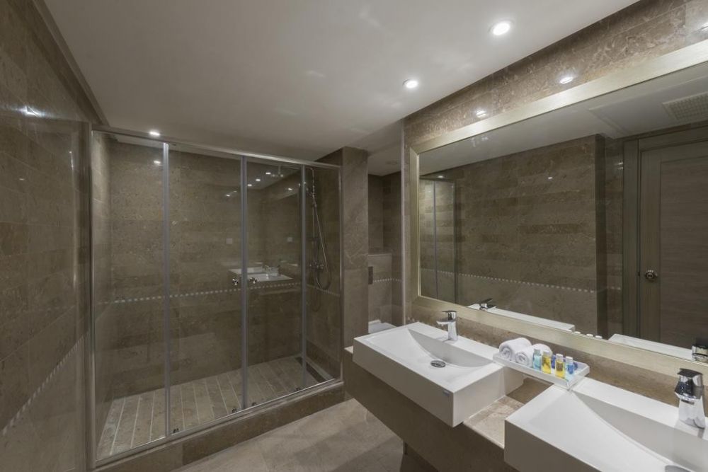 В стаите: Хотелът разполага с 520 модерно обзаведени стаи, разположени в отделни сгради с асаньори: Superior Garden View (26 кв.м), Superior Room Sea View (26 кв.м), Family Room (32 кв.м), Junior Suite Prestige (36 кв.м, представлява две двойни стаи с междинна врата), Suite Senior Prestige (52 кв.м, представлява две стаи разделени от арка). Всички стаи са оборудвани с климатик, телевизор, баня с душ/вана, сешоар, минибар (бутилирана вода, зарежда се ежедневно), сет за чай/кафе, сейф, Wi-Fi, балкон или тераса, тоалетни принадлежности, ютия (при запитане). Почистване на стаите - всеки ден.