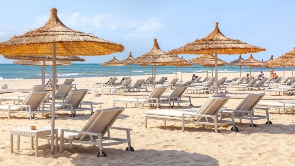 Плаж: Собствен, широк пясъчен плаж пред хотела. Чадъри, шезлонги и матарци на плажа и при басейна - безплатно. Плажни кърпи – безплатно, срещу депозит.