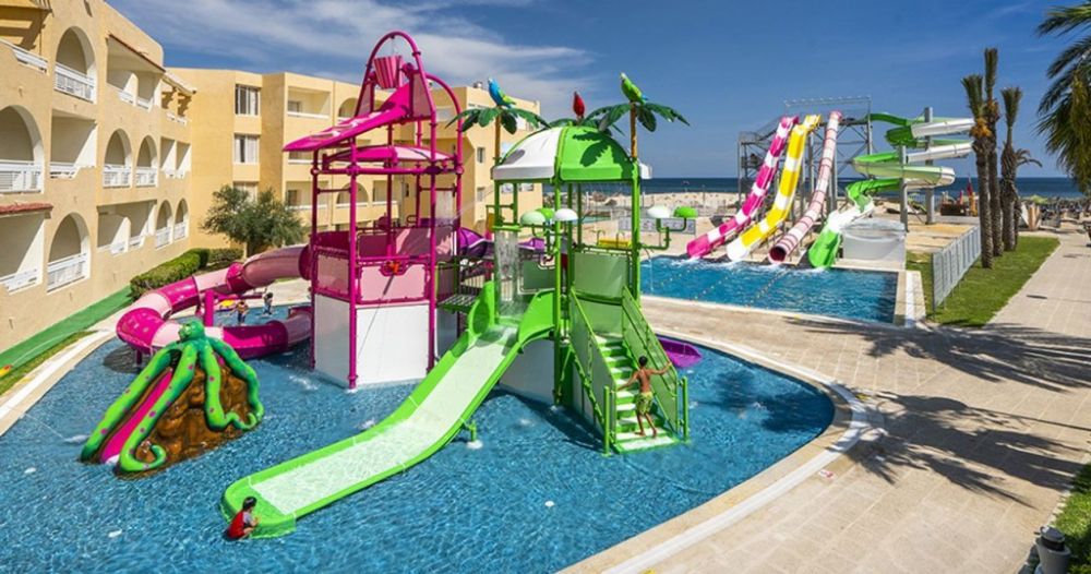 За децата: детски басейн с мини пързалки, втори детски басейн, мини клуб (4-12 год), детска площадка, детски столове в ресторантите, бебешка кошара (по заявка, при наличност).