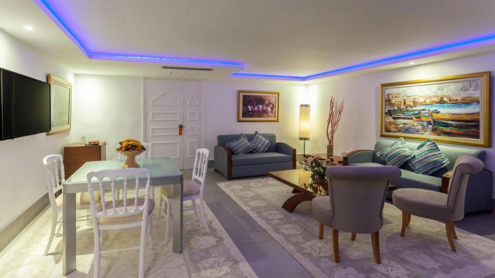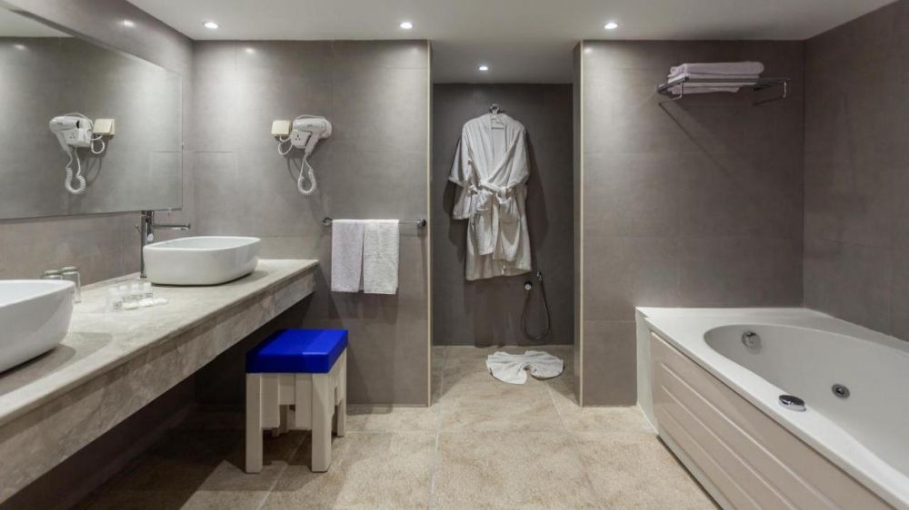 Всички стаи са оборудвани с климатик, телевизор, телефон, баня с душ/вана, сешоар, минибар (празен), сейф, Wi-Fi, балкон/тераса. Почистване на стаите - всеки ден, смяна на спалното бельо и кърпите – при заявка.