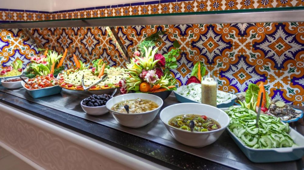 Основен ресторант, лоби бар, снак бар на басейна, мавританско кафене, открит басейн, закрит басейн (отопляем през зимата), аква парк (2 басейна, 10 водни пързалки: 5 пързалки за възрастни, 5 пързалки за юноши, басейн с мини пързалки за малки деца), СПА център, конферентна зала, магазини, обмяна на валута.