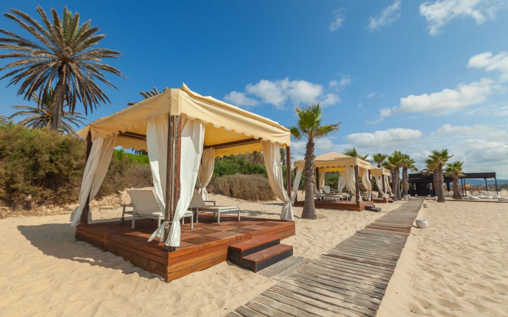 Собствен, широк пясъчен плаж пред хотела. Чадъри, шезлонги и матарци на плажа и при басейна - безплатно. Плажни кърпи – безплатно, срещу депозит.