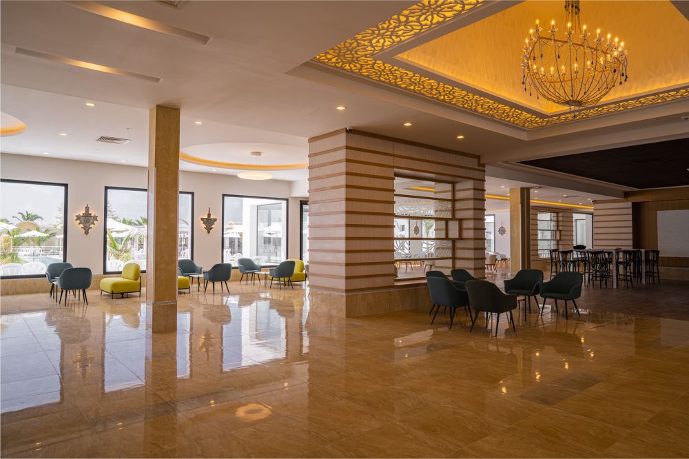 Основен ресторант Citrus (с наличие на детско меню, столчета за деца), барбекю Palma до басейн от 01.07 до 31.08), лоби бар Oasis, бар басейн, плажен бар, бар до аква парка (01.05-31.10), ресторант а ла карт Aloe Beach (01.07-31.08, срещу заплащане), открит басейн, воден парк в хотел Club Novostar Omar Khayam 3* (01.05 – 31.10), отопляем закрит басейн (затворен 30.09 - 01.06), дневна и вечерна анимация за деца и възрастни, диско и нощни шоута, конферентна зала, обмяна на валута, 24 часова рецепция, магазин, СПА център.