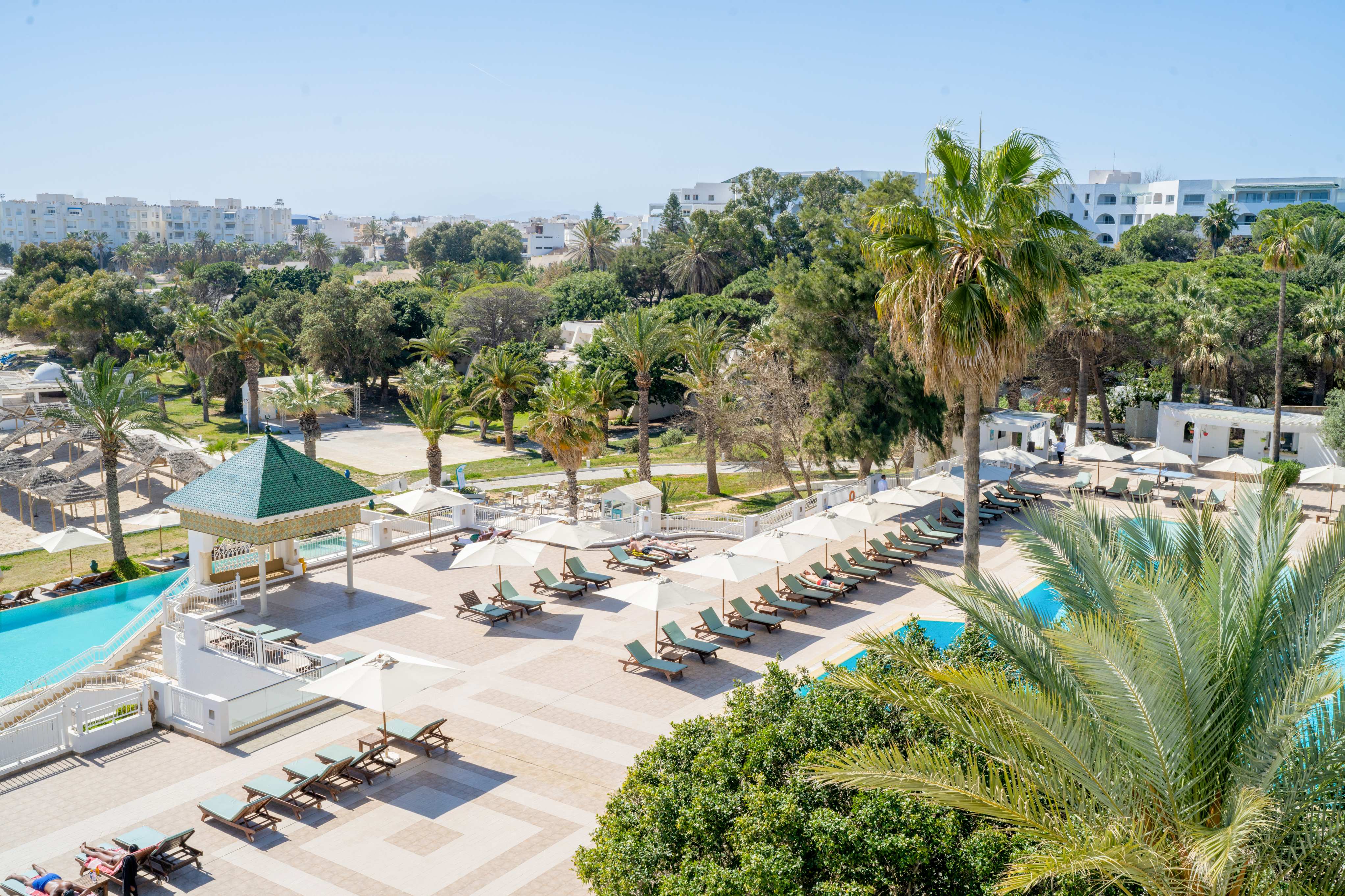 Хотелът се намира на 55 км от международно летище Енфида, на 2 км от центъра и Старата Медина, на 12 км от Ясмин Хамамет, на брега на морето. Последно реновиран през 2017 год.
