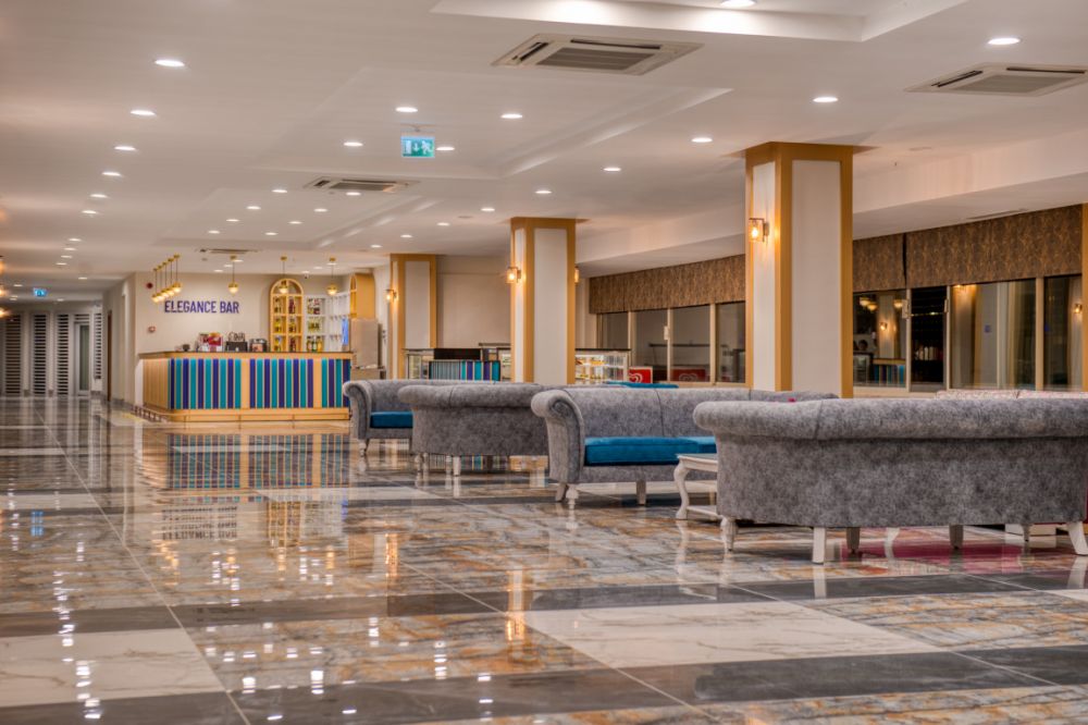 Основен ресторант, 4 бара, открит басейн, водни пързалки, детски басейн, детски и младежки клуб, SPA център със закрит басейн, турска баня и сауна, фитнес зала, тенис на маса, плажен волейбол, водни спортове (срещу заплащане), дискотека, магазини, 5 конферентни зали, безплатен безжичен интернет в лоби, паркинг.