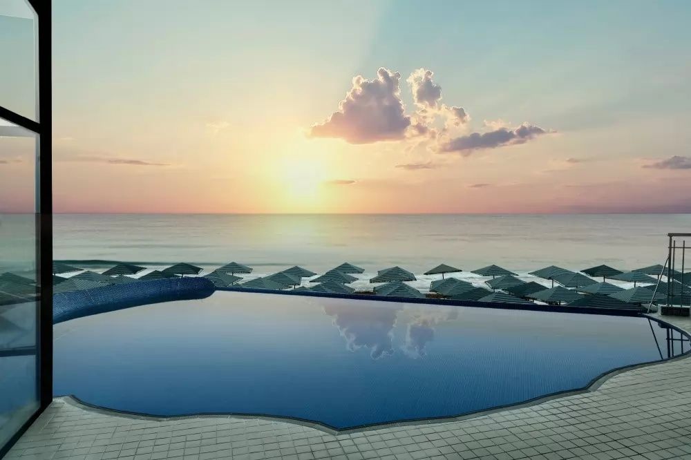 ПЛАЖ: Собствен, пясъчен. Чадъри, шезлонги и матрацина плажа и при басейна – безплатно, плажни кърпи – безплатно.