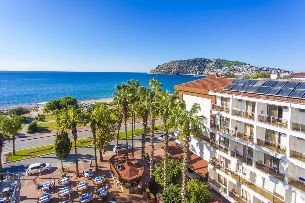 Хотелът се намира на 800м. от центъра на гр.Алания на 125км. от летище Анталия. Построен е през 1986г., с обща площ от 5400 м2., реновиран през 2012г. 3 звезден хотел, само на 1 км от търговските и развлекателни места в центъра на Алания. Можете да се стигнете лесно с автобус и такси до центъра на града.