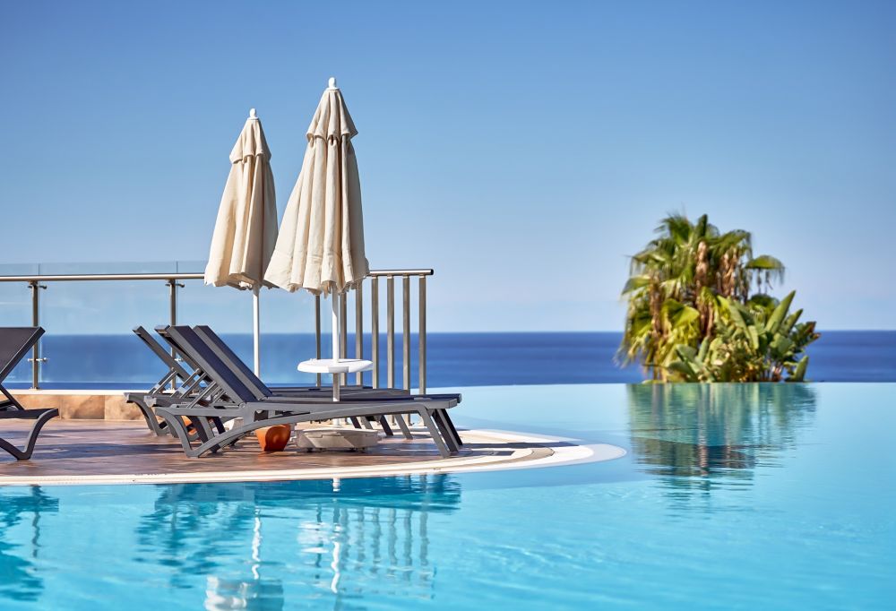 Плаж: Собствен, пясъчно-чакълест. Чадъри и шезлонги на плажа и басейна - безплатно.