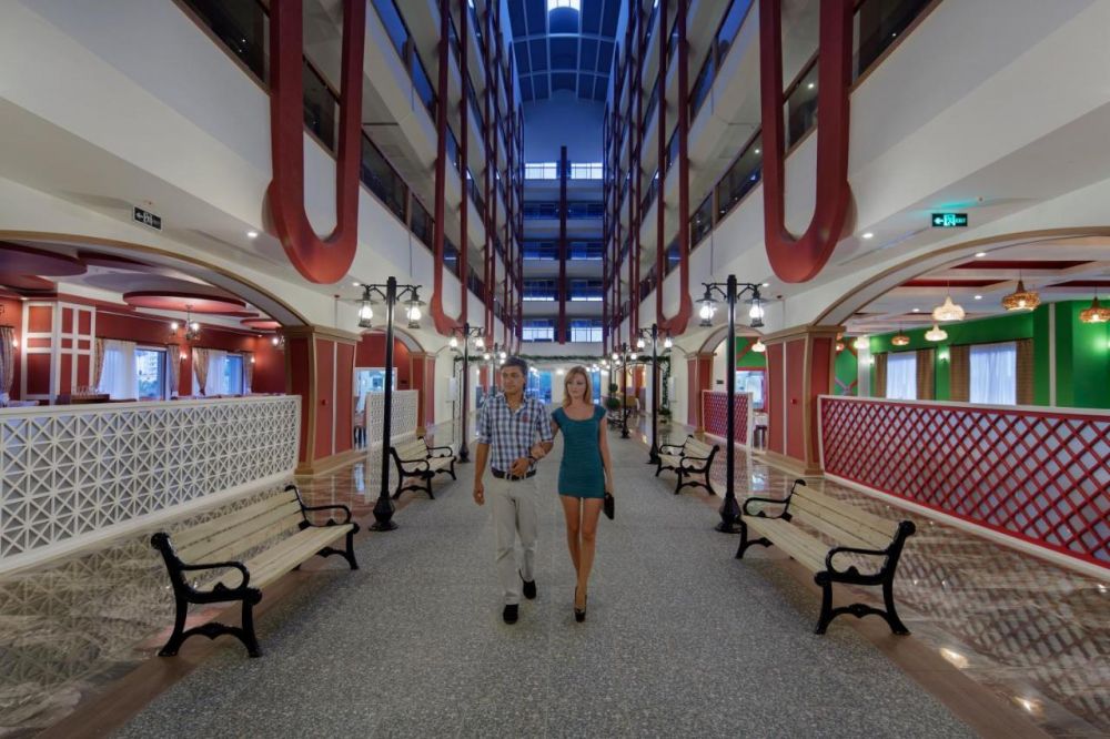Основен ресторант, 2 а-ла-карт ресторанта (рибен, турски - 1 безплатно посещение на 1 от ресторантите при минимум 7 нощувки), гьозлеме, сладкарница, бистро ресторант, 6 бара, 2 открити и 1 закрит басейн, водни пързалки, приключенски парк, кино, амфитеатър, СПА център, дискотека, магазини, 2 конферентни зали, паркинг.