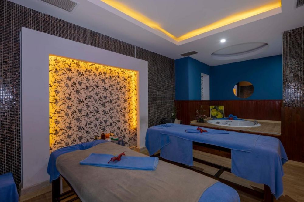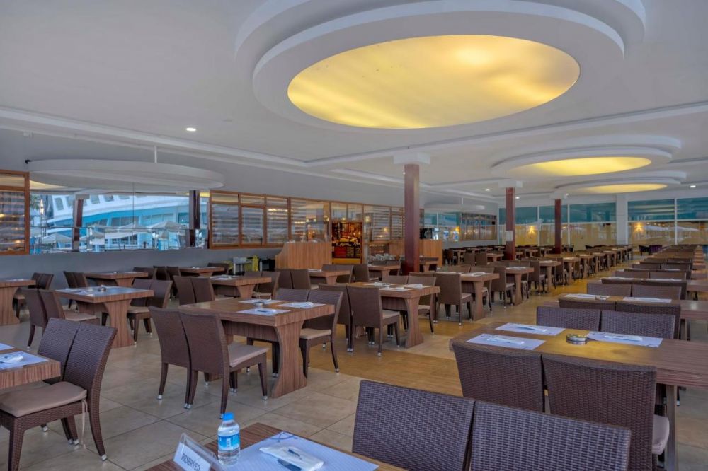 Основен ресторант, а-ла-карт ресторант (рибен - с предварителна резервация), 5 бара, сладкарница, открит и закрит басейн, водни пързалки, дискотека, амфитеатър, конферентни зали. За децата: Детски басейн с пързалки, анимация, мини клуб (4-12 г.), мини диско. Безплатни услуги: Сауна, турска баня, парна баня, фитнес, волейбол, анимация, паркинг. Платени услуги: Масаж, Спа център, фризьор, лекар, химическо чистене, билярд, рент -а-кар, тенис корт, тенис екипировка, осветление за тенис корт, магазини, водни спортове, WiFi интернет.