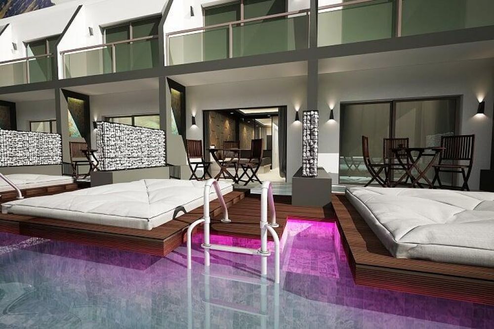 275 Standard Room (изглед градина или страничен изглед море – 22 м2), 50 Standard Bunkbed Room (1 спалня и 2-етажно легло, изглед градина или планина – 26 м2), 3 Disabled Rooms (стаи за инвалиди, на първи етаж в основната сграда, гледка градина или планина – 22 м2), 32 Family Room (2 спални със свързваща врата, гледка градина – 33 м2), 10 Love Suit (спалня с двойно легло, тераса с джакузи, изглед басейн или море – 22 м2), 60 Garden Block Standard Room (изглед градина – 26 м2), 16 Swim -Up Room (спалня, тераса с директен достъп до общ басейн – 26 м2).