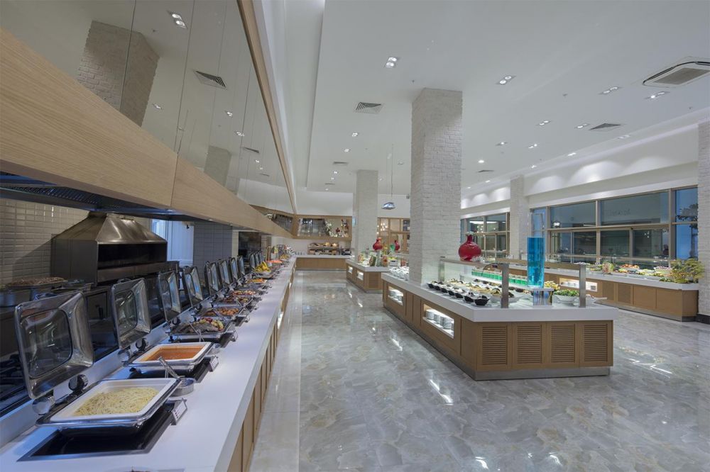 Основен ресторант, 2 а-ла-карт ресторант (рибен и стек – срещу заплащане, с предварителна резервация), снек ресторант, 5 бара, кафетерия, 4 открити и 1 закрит басейн, аквапарк, амфитеатър, СПА център, магазини, конферентна зала.