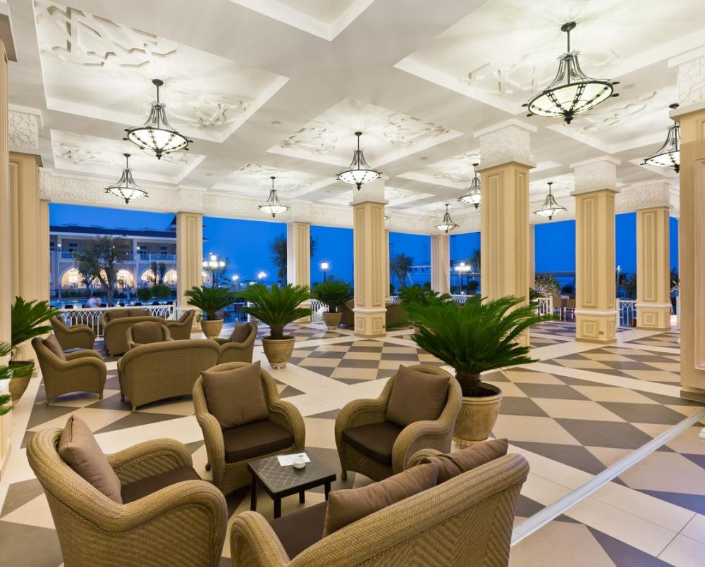 Основен ресторант, 4 а-ла-карт ресторанта (османски, италиански, средиземноморски, азиатски - с предварително записване, платено), 13 бара, сладкарница, дискотека, 11 басейна (1 с подгряване - 26 градуса), аквапарк с 26 водни пързалки разположени на площ от 22 000 м2, барове: 4 конферентни зали.