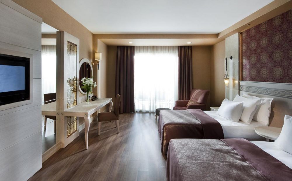Хотелът разполага с общо 674 стаи, разположени в двадесет и четири 2- и 3-етажни вили, от които 244 Deluxe room (55 м2); 167 Deluxe pool room (с вход към общ басейн, 50 м2); 148 Deluxe family room (две спални с врата, баня с джакузи и душ, 80 м2); 32 Superior family room (2 спални, едната с врата, 2 бани с джакузи и душ, 90 м2); 73 Deluxe pool family room (с право на ползване на общ басейн, две спални с врата, баня с джакузи и душ, 80 м2); 1 Superior Pool Suite (хол, спалня без врата, баня с джакузи, пряк достъп до басейна, 100 м2, VIP-обслужване); 1 Superior pool grand suite (хол и спалня във вид на студио и спалня с врата, 2 бани, 2 джакузита, 150 м2, VIP-обслужване); 4 Superior Villa (на първи етаж: хол, кухня, система за домашно кино, стъклен под, под който има басейн; на втори етаж: 1 гардеробна, две спални с врата, 2 бани, 2 джакузита, собствен басейн, градина (140 м2), 200 м2, VIP-обслужване); 1 President Suite (3 спални с врата, едната от спалните е с хол в стил студио, 3 бани с джакузита, собствен басейн, градина (260 м2), 180 м2, VIP-обслужване); 1 King Suite (хол, американска кухня, 4 спални с врата, 4 бани с джакузита, 400 м2, VIP-обслужване). Всички стаи са оборудвани с климатик, телевизор, телефон, баня с душ/вана, сешоар, халат, меню на възглавници, сет за кафе/чай, минибар (безплатно), сейф (безплатен). Почистване на стаите и смяна на кърпите - всеки ден, смяна на спалното бельо – 3 пъти в седмицата.