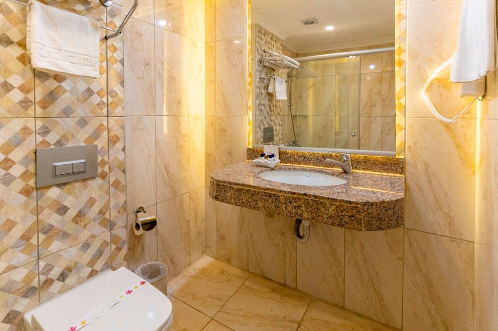 Климатик, сателитна телевизия, телефон, сейф, мини бар, баня с душ, сешоар, балкон. Почистване на стаите - всеки ден, смяна на бельото - 3 пъти седмично.