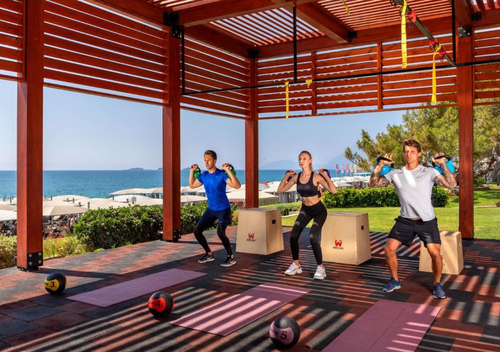 Безплатни услуги: Сауна, турска баня, парна баня, зона за релакс, фитнес, мини футбол, баскетбол, тенис корт, тенис на маса, плажен волейбол, водно поло, водна гимнастика, дартс, боча, билярд, бадминтон, табла, танци, табата, йога, стречинг, пилатес, степ зумба, канго джъмп, спортни тренировки, звукова терапия, жива музика, анимация, Wi-Fi (на цялата територия).