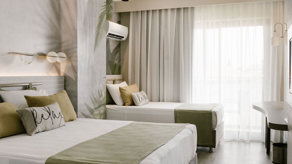 Хотелът разполага със 120 стаи. Всички са оборудвани с индивидуален климатик, LCD телевизор, телефон, баня с душ, сешоар, сейф (платен) и минибар (вода и безалкохолни напитки, безплатно), балкон, под - ламинат, WI-FI (платено). Почистване на стаите - ежедневно, смяна на спално бельо - 3 пъти седмично.