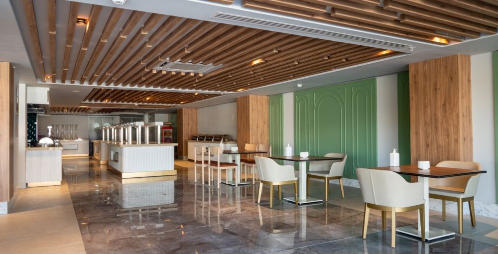 Основен ресторант, 4 бара, 1 открит басейн, Спа център, фризьорски салон, пералня, лекарски кабинет, магазини. Безплатни услуги: турска баня, сауна, фитнес, тенис на маса, дартс, WI-FI (на лоби), плажен волейбол. Платени услуги: масажи и различни разкрасителни процедури, водни спортове.