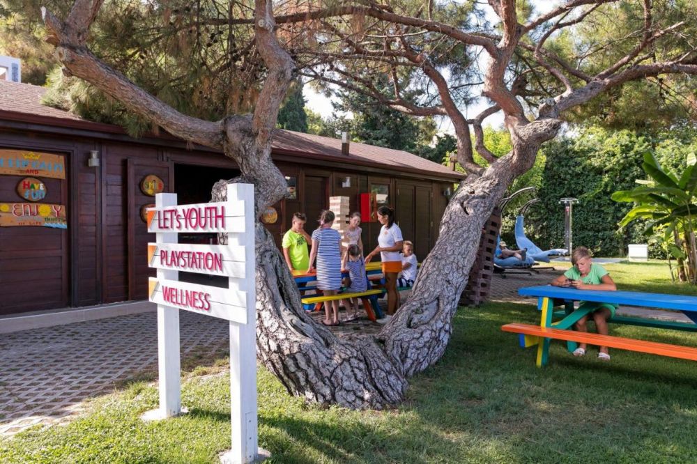 Основен ресторант, 4 а-ла-карт ресторанта (рибен и барбекю - платени, турски, италиански - с предварителна резервация, съгласно концепцията на хотела), 5 бара (1 от които 24 часа), 3 открити басейна, водни пързалки, кино, амфитеатър, СПА център, дискотека, магазини, конферентна зала, паркинг.