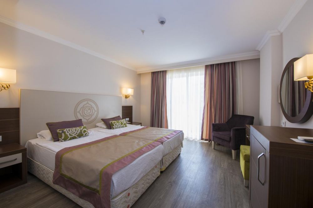 Хотелът се състои от 343 стаи, от които 158 стаи Standart Room Land View; 124 Standart Room Sea View; 24 Anex; 8 Suite, 5 Family Room . Всички стаи са оборудвани с: индивидуален климатик, телевизор, мини бар (платен), сейф (платен), баня с душ или вана, сешоар, телефон, балкон, сет за кафе/чай. Всекидневно почистване на стаите.