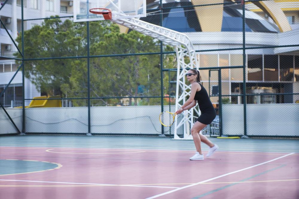 Oсновен ресторант, 2 а-ла-карт ресторанта (турски и рибен -платено), лоби бар,бар на плажа, снек панорамен ресторант, воден бар, дискотека, 2 басейна, вътрешен басейн (работи през зимата), водни пързалки, салон за красота, СПА център, фитнес, сауна, парна баня, релакс стаи, масажи, турска баня, анимация, магазин, конферентни зали. За децата: детски басейн. Безплатни услуги: турска баня, сауна, wifi, фитнес център, тенис на маса, тенис на корт, дарц, боча, игри до басейна и на плажа, плажен волейбол, гимнастика, Платени услуги: джакузи, билярд, масаж, факс, лекар, химическо чистене, коли под наем, джет, парасейлинг, осветление и екипировка за тенис корт.