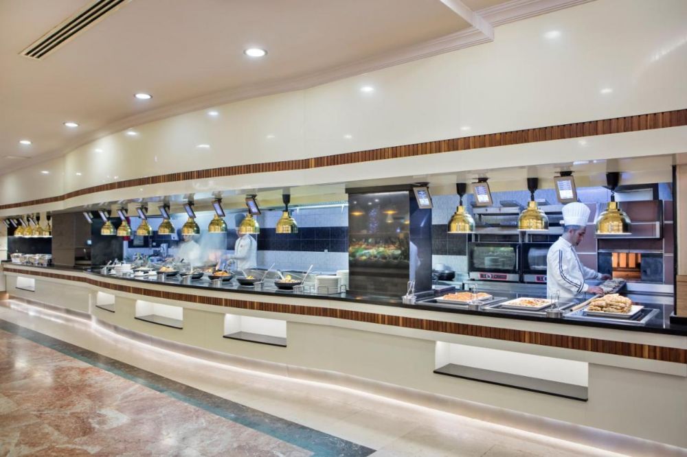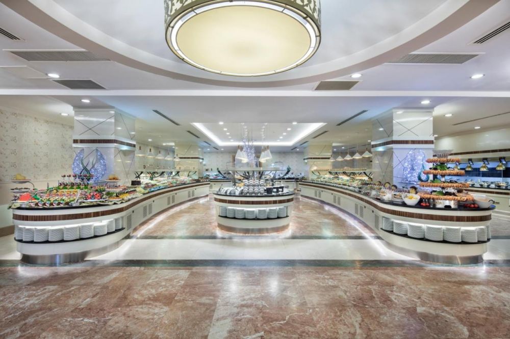 Основен ресторант, 6 а-ла-карт ресторанта (рибен, турски, италиански, азиатски, мексикански, барбекю – 1 безплатно посещение на 1 от ресторантите при минимум 7 нощувки), сладкарница, пекарна, 5 бара (1 от които 24 часа), 3 открити и 1 закрит басейн, водни пързалки, амфитеатър, СПА център, дискотека, магазини, 3 конферентни зали.
