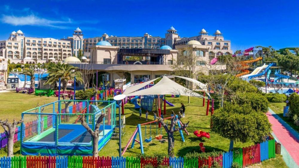 7 водни пързалки, 4 тенис корта, СПА център, фитнес, боулинг, амфитеатър, анимация, WI-FI- съгласно концецпията на хотела.
