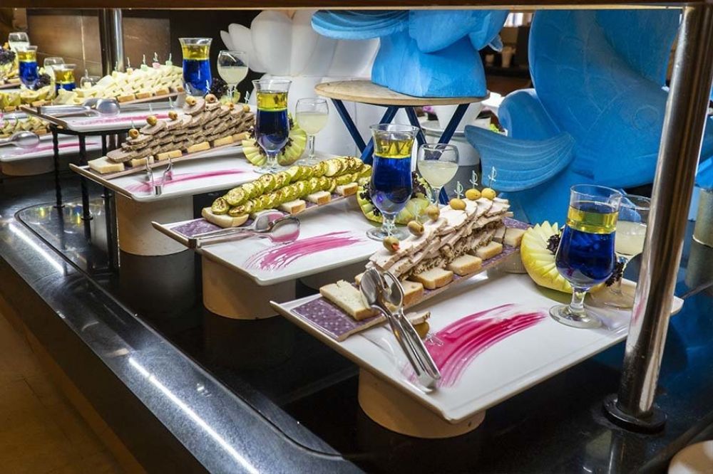 Основен ресторант с капацитет 450 места, външен ресторант - 250 места, снек бар, 2 Ала карт ресторанта -рибен и турски - с предварителна резервация. Лоби бар, бар на плажа, сладкарница, дискотека, 2 открити басейна и 1 закрит.