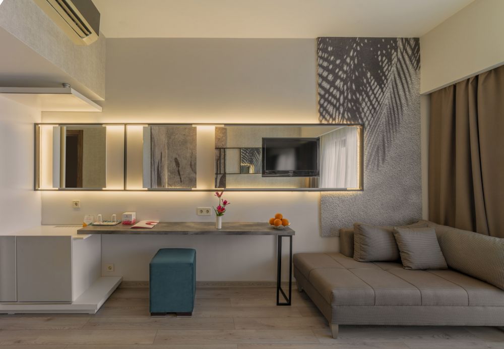 Стаи в основна сграда Main Building: 84 стаи Standard room (29 м2); 47 стаи Duplex rooms (44 м2) двуетажен мезонет, на първия етаж има две единични легла, а на втория спалня, с обща баня и тоалетна и балкон.